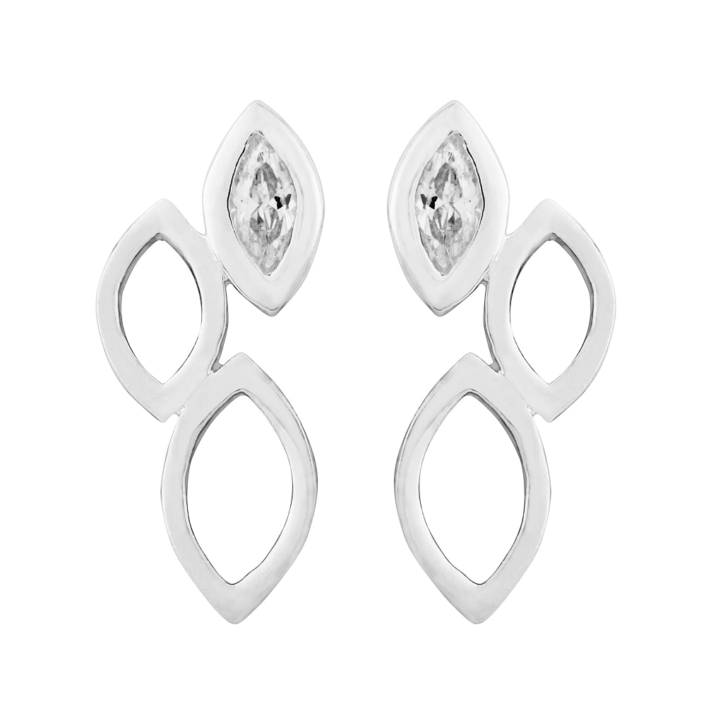 Silver Earring. 3 Leaf Shapes with one cz.