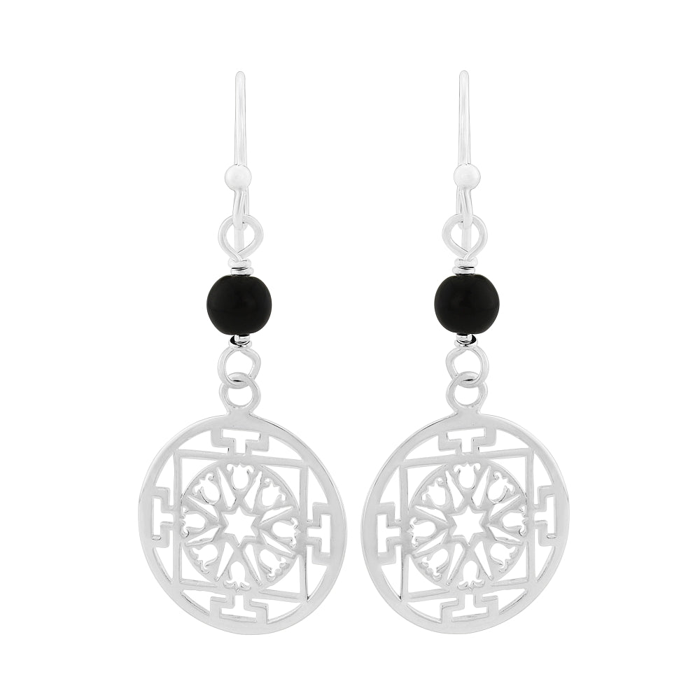 Silver Round Dropper. Celtic style design,Black Bead at top
