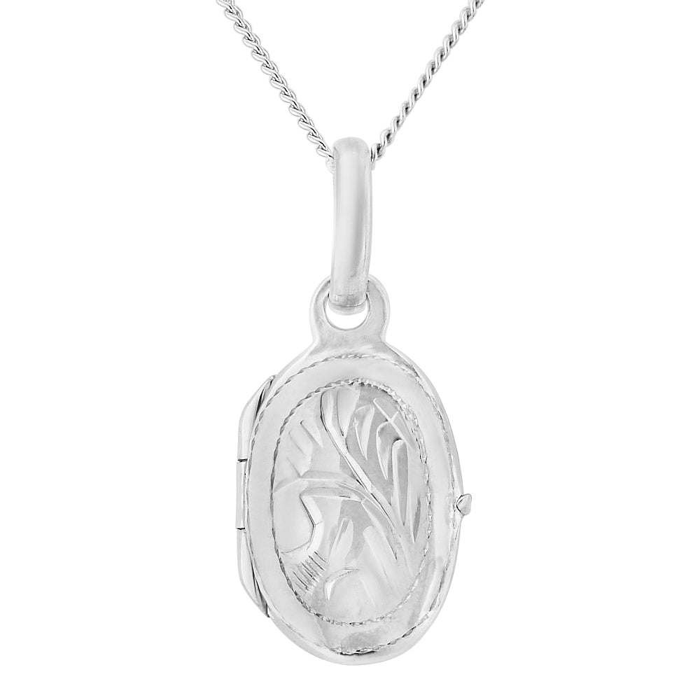 Silver Small engraved Locket with Chain 12mm deep including chain