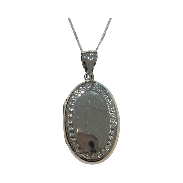 Silver Oval Locket with Beaded Edge including chain