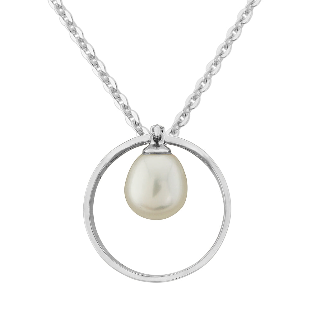 Silver Chain, FW Pearl 8-8.5mm w/topaz, inside a Band Circle