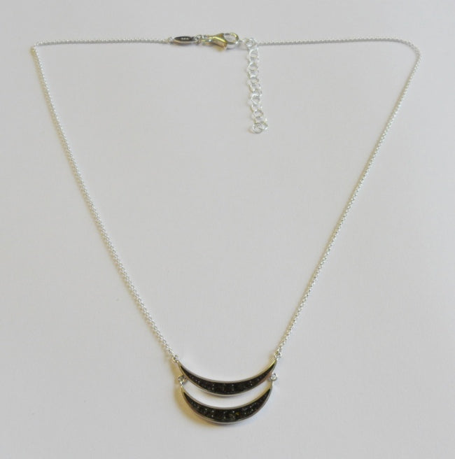 Silver Marcatie smokey Double crescent Chain & Pendant