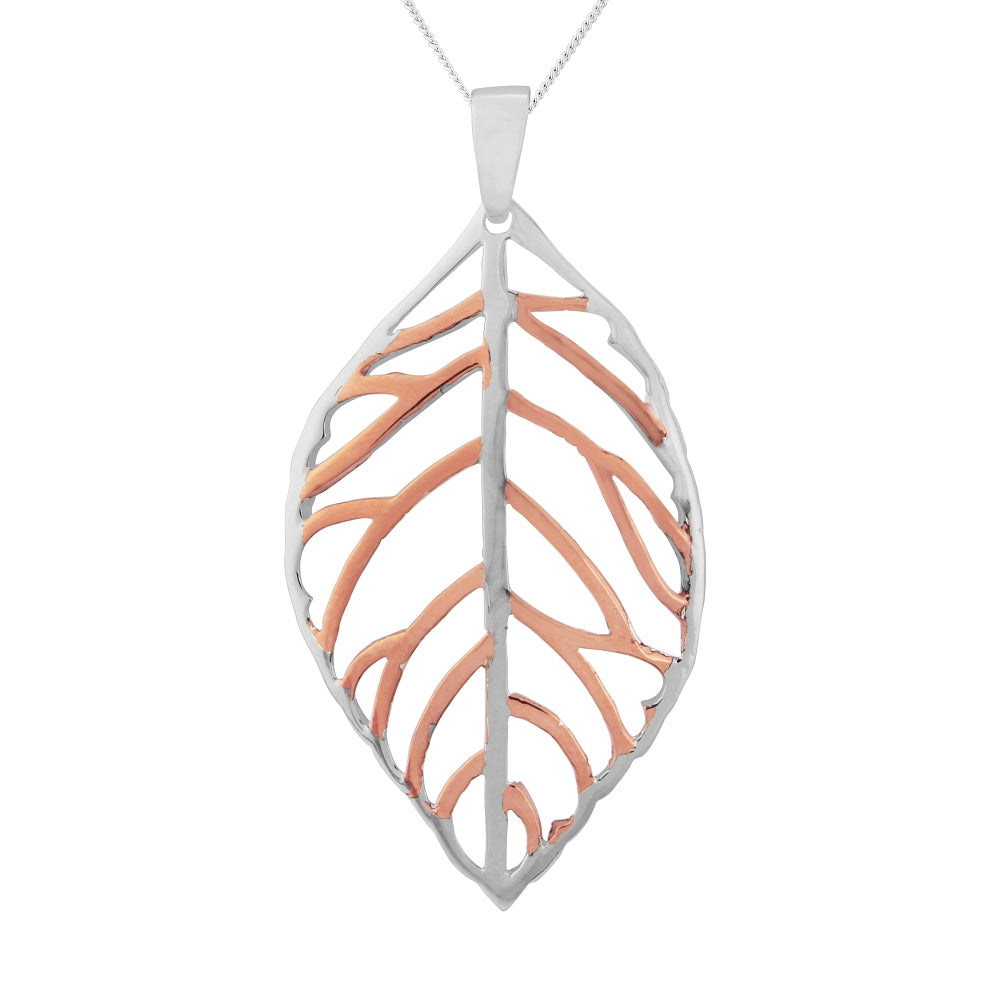 Silver Leaf Pendant with Rose Colour Plating including chain