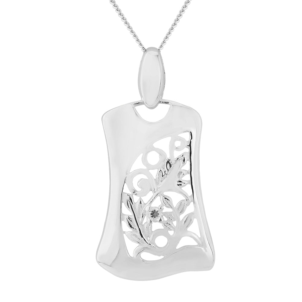 Silver rectangle Pedant with Fancy centre with 1xcz including chain