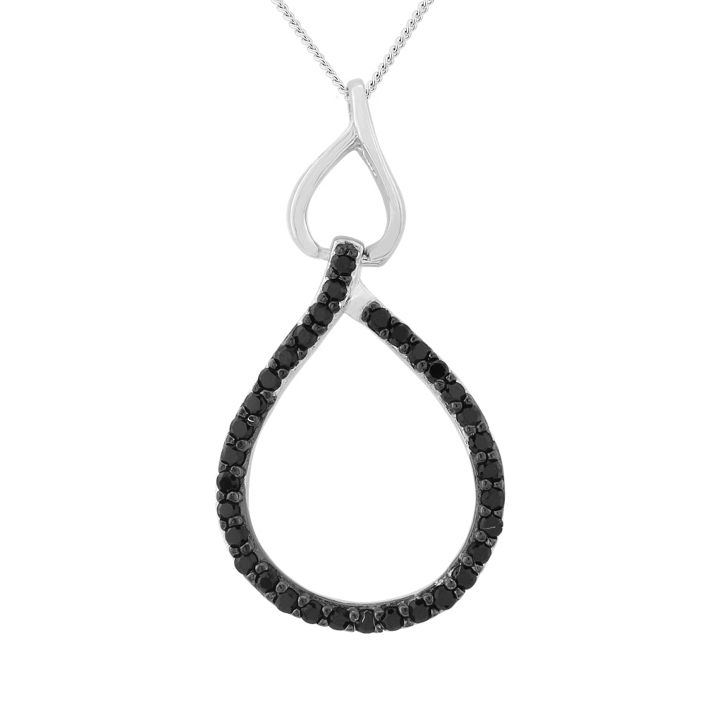 Silver Pendant set with Black CZ's 32mm deep including chain