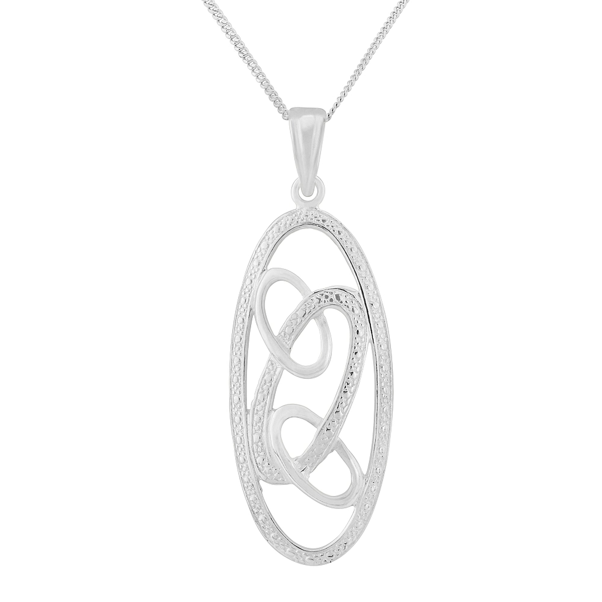 Silver oval pendant with 3 ovals in the centre including chain