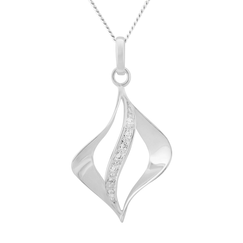 Sil. Lose diamond shape with cz filled line in centre including chain