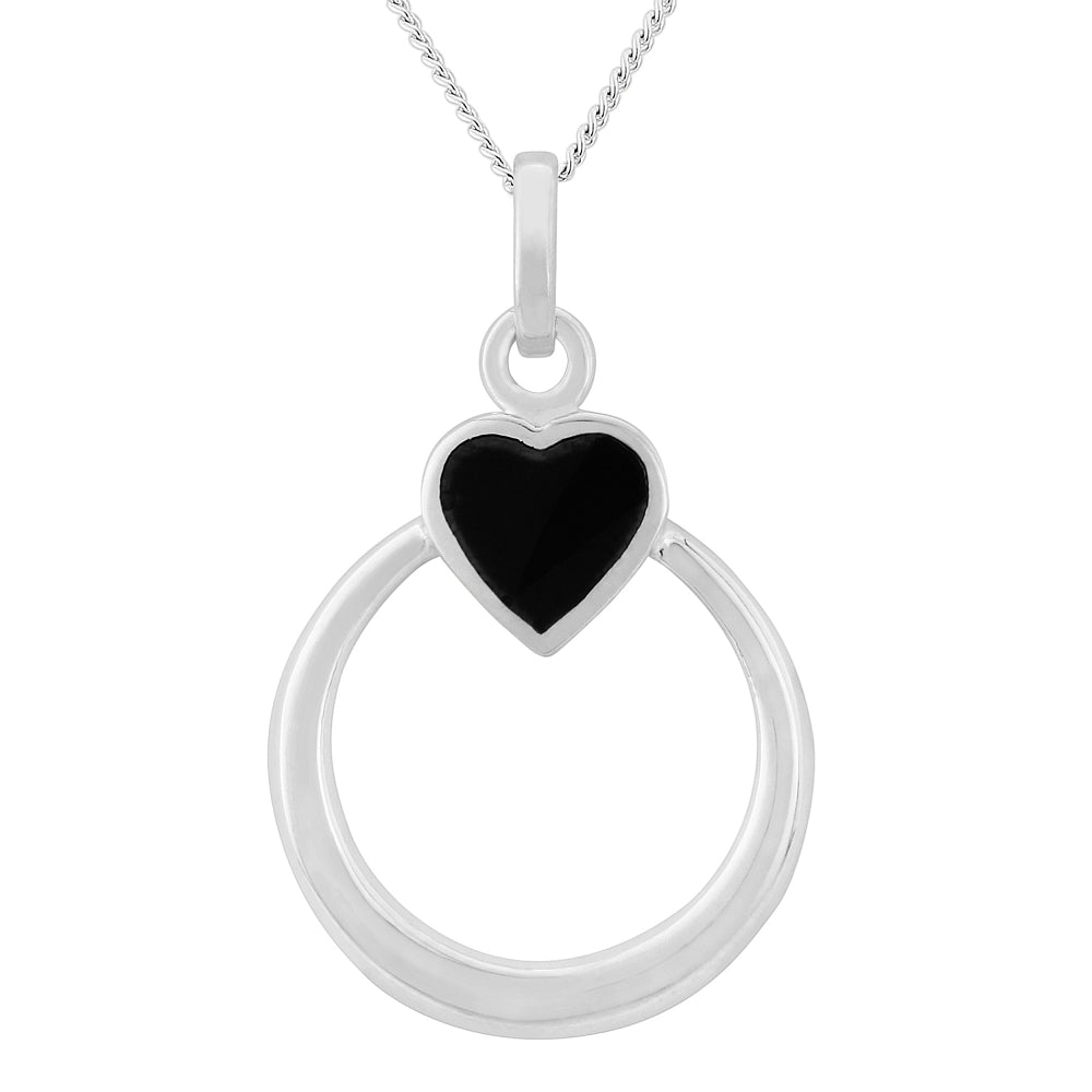 Silver Cut out circle with Black Heart @ top including chain