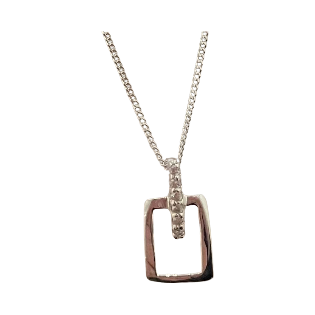 Silver, Cut out SQ Pendant with line of 6xCZ including chain