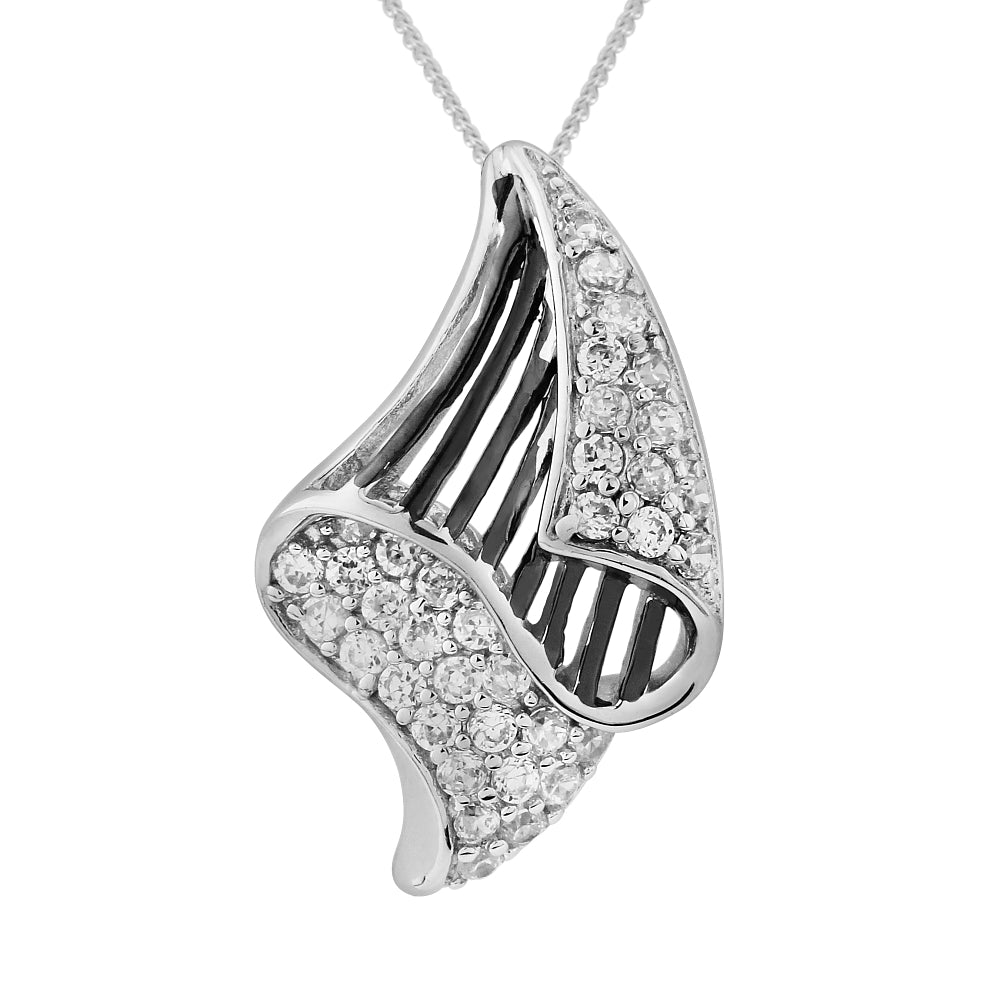 Silver fancy pendant swirl shape with cz's and tracked cent including chain