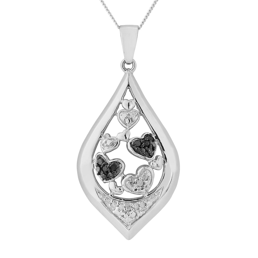 Sil Tear Drop shape with Black & White DIAMOND Pendant including chain