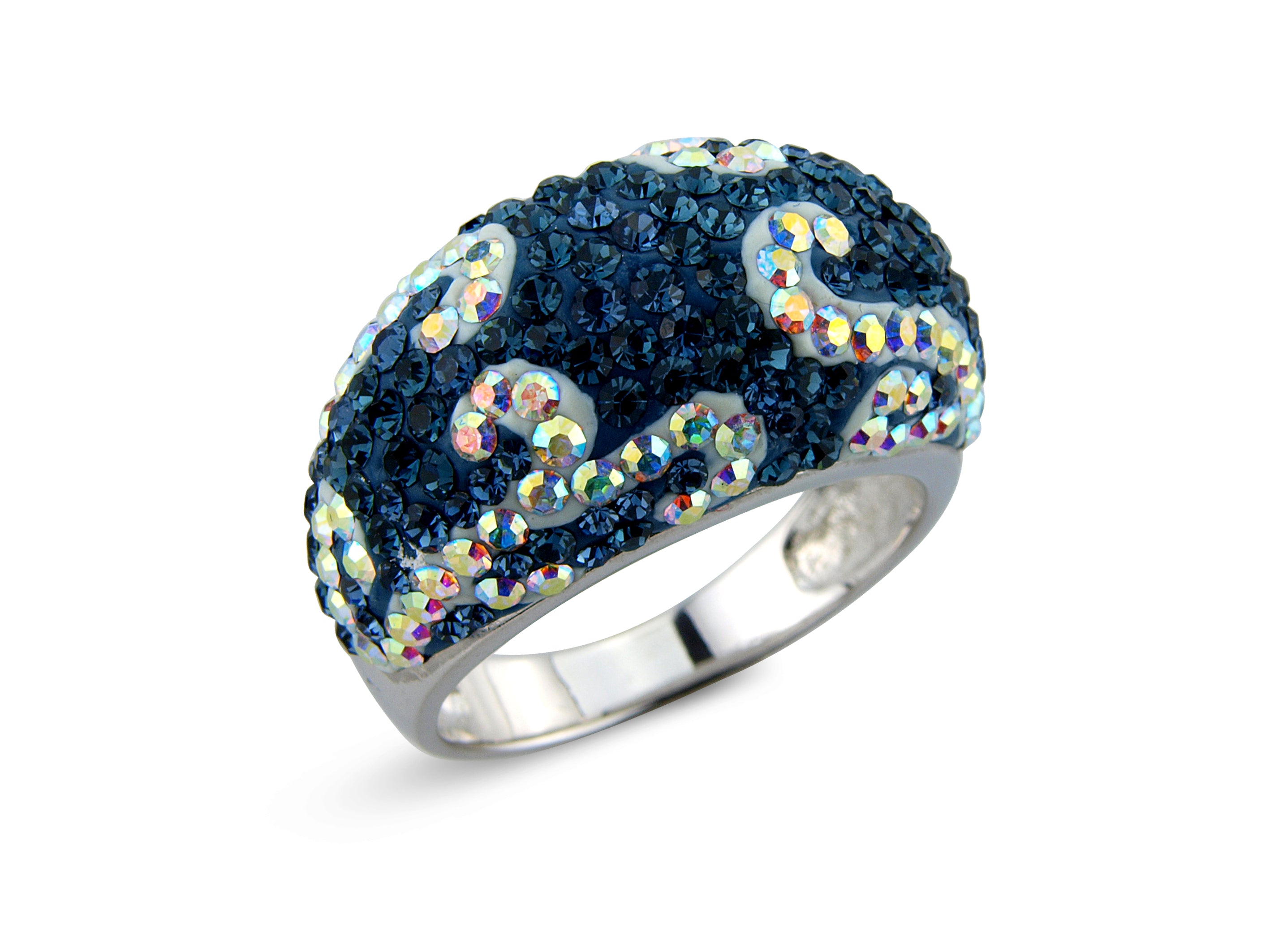 Silver Large Dark Blue and White Swarovski Crystal Ring