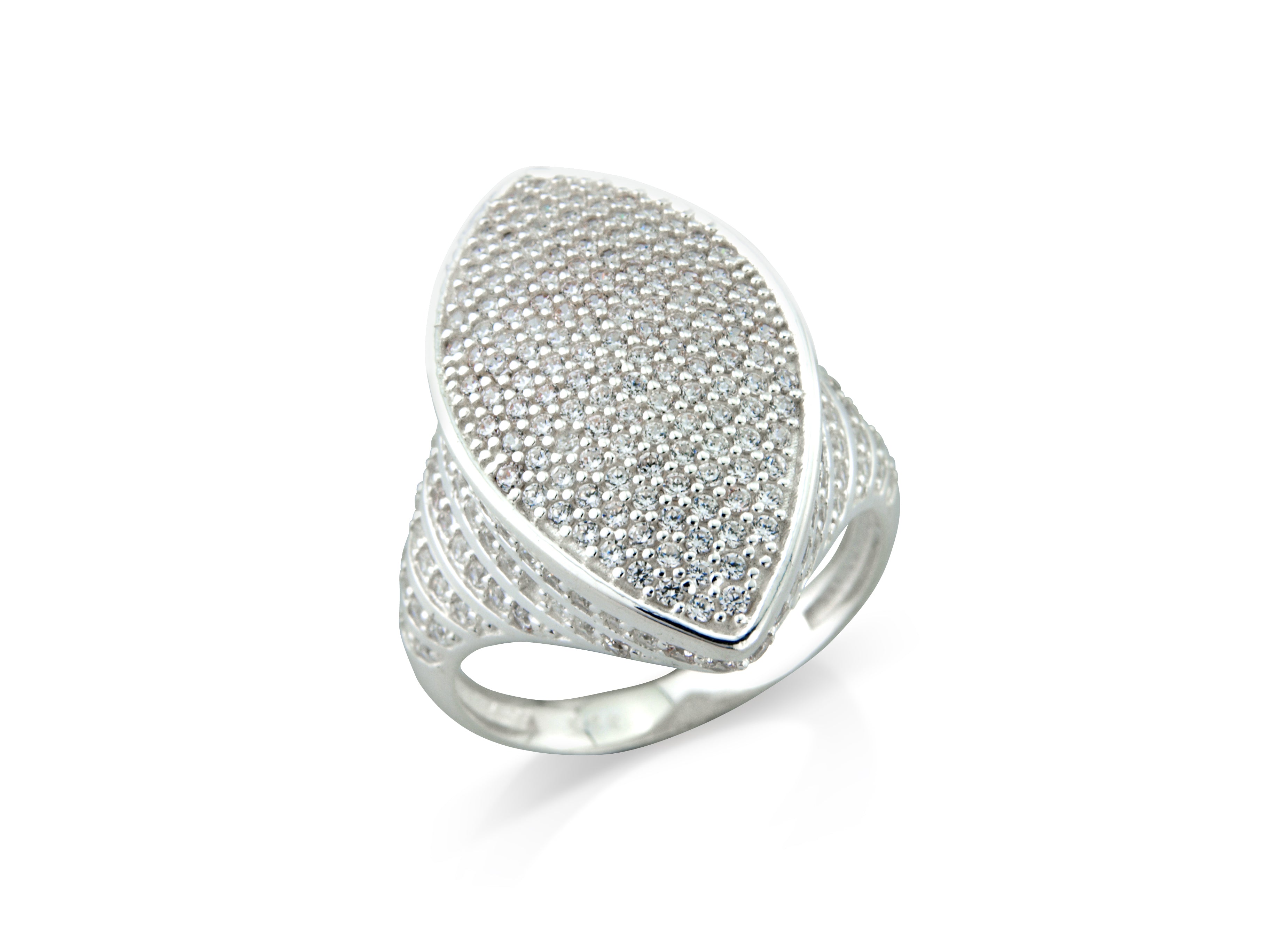 Silver Ring Eye shaped head filled with cz & cz stepped sides